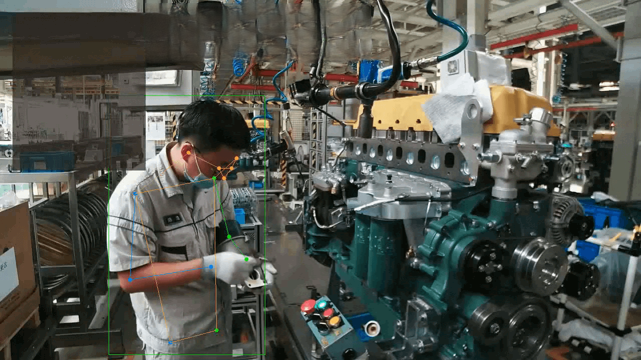 - 通过AI行为分析动作理解技术发现人工生产中的违规操作,提示员工及时改正,避免给不达标产品流到下个环节。